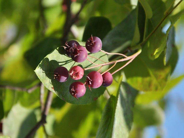 Blüte, Früchte und Blatt: Bereits im April findet ein sehr schöner bronzefarbener Blattaustrieb statt, dem kurz darauf eine bis in den Mai dauernde weiße Blüte folgt. Dieses wunderschöne Zusammenspiel des farblich austreibenden Blattes mit den schneeweißen Blütentrauben stellt im Frühjahr ein besonderes Schauspiel dar. Später im Jahr reifen blau-schwarze kugelige Früchte am Strauch. Diese können direkt vom Strauch roh gegessen werden, eignen sich jedoch ebenfalls zur Verarbeitung von Marmelade, Kompott, Saft, Wein o.ä. Sie schmecken süß-aromatisch und sind reich an Vitamin C. Die eiförmig-elliptischen Blätter nehmen den Sommer über eine olivgrüne Blattfarbe an und gehen im Herbst dann in ein prächtiges Gelb bis Orange-Rot über.
