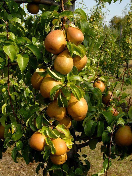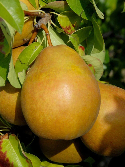 | Frucht: | Mittel bis groß, stumpfkegelig; grünliche, sonnenseits bronzerote Schale, feine Berostung; saftig, schmelzend, hervorragender Geschmack. |