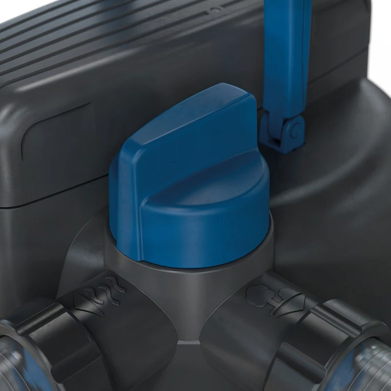 - 2-WEGE-VENTIL: Wählen Sie aus, ob das Wasser nach dem Reinigen des Filters in den Teich oder ins Abwasser fließt