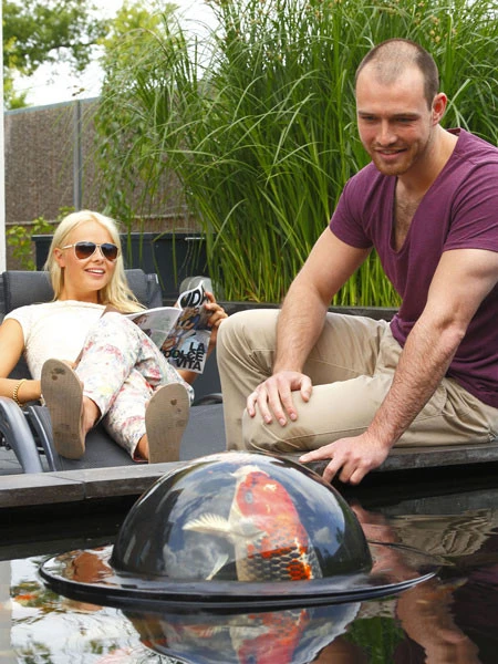 - machen Sie, vor allem zu Beginn, die Fische neugierig auf das neue Spielzeug, indem Sie von unten Futter in die Kuppel geben. Im Laufe der Zeit werden diese automatisch die Kuppel in ihre tägliche Schwimmroute einbeziehen.
