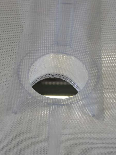 Beim Bespannen der speziell konfektionierten Doppelfolie entsteht ein Luftpolster, welches ein Kälteeindringen bzw. Wärmeentweichen verhindert. Durch die Iglu-Form ist der Aufenthalt von Schnee und Wasser auf dem Florino nahezu unmöglich.