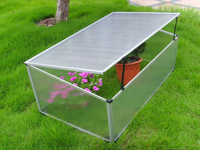 Das Frühbeet besteht aus Polycarbonatplatten im Aluminiumgestell und ist ein nützlicher Helfer für die Aufzucht von Pflanzen.