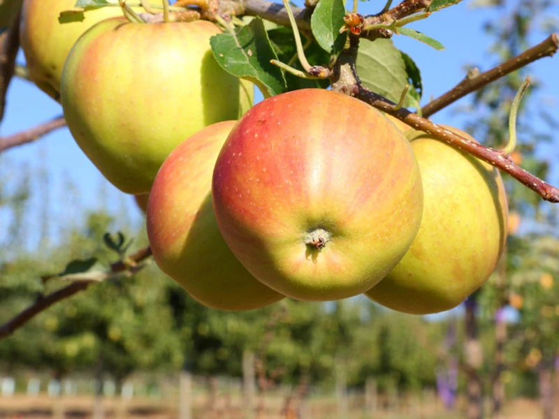 | Frucht: | Mittelgroß, rote Fruchtschale, ausgewogenes Verhältnis aus Säure und Zucker, lagerfähig, wohlschmeckend. |