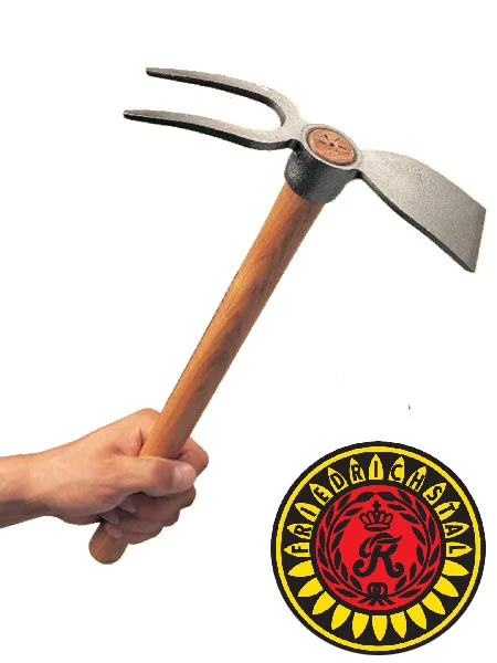 Werkzeug mit Breitblatt und 2 Zinken, Kurzstiel 400 mm, für die Pflege von Rabatten und Beeten sowie Grabstellen. Hochwertiger Eschenholzstiel