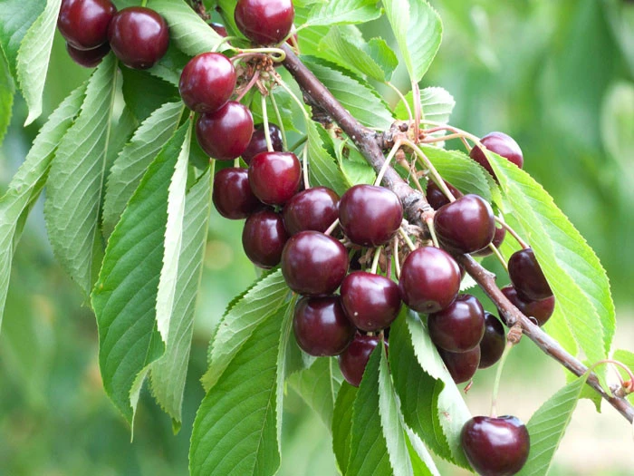Die Säulenkirsche ‚Sylvia‘ ist nicht selbst befruchtend. In 100 bis 200 m Entfernung sollte möglichst ein anderer Befruchter-Kirschbaum stehen.
