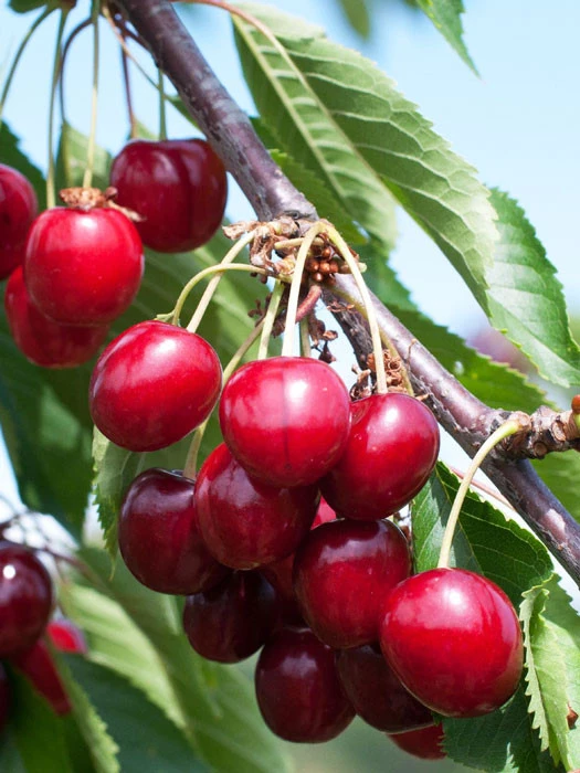| Frucht: | Mittelgroße Knorpelkirsche, tropfenförmig; rotbraun, glänzend; Fleisch fest, gut gefärbt, saftig mit angenehmem Geschmack. |