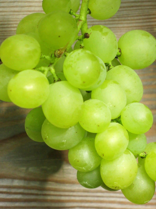 | Frucht: | Große, lockere Trauben mit mittelgroßen, gelben und knackigen Beeren. |