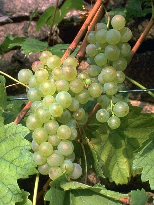 | Frucht: | Große, meist lockere Trauben mit großen, gelbgrünen Einzelbeeren; süßes, mild-würziges und edles Aroma. |