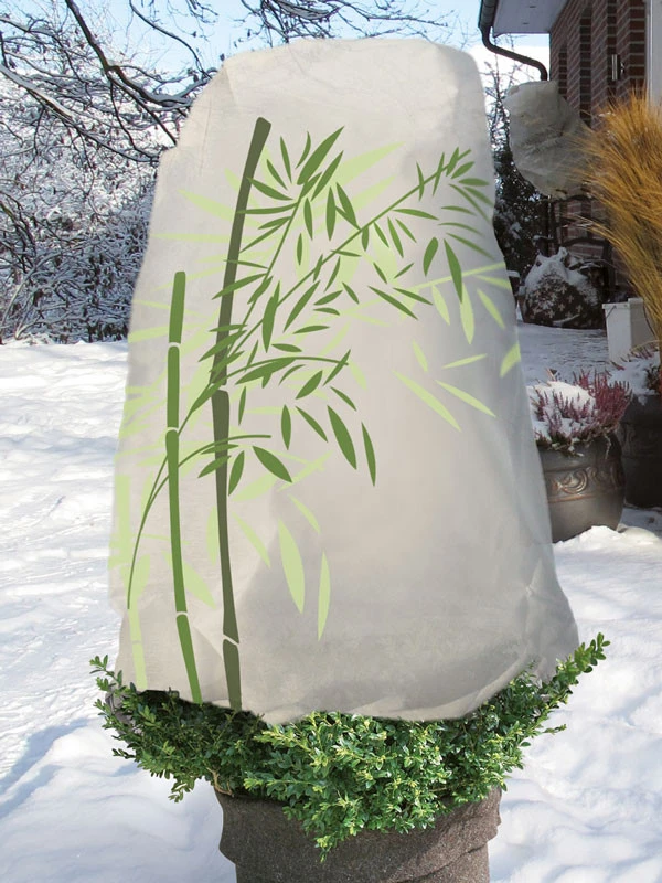 Schöne Winterschutz-Vliesmantel bedruckt mit Bambusmotiv in Grüntönen