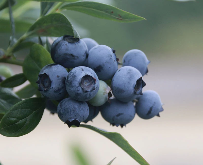 Aus den vorher beschriebenen Früchten entwickeln sich die bekannten hellblauen Früchte, welche zwischen August und September ihre volle Ausreife erreichen. Dann können die herrlichen süß-säuerlichen Beeren gepflügt und sofort verzehrt werden. Die Frucht ist als mittelgroß zu bezeichnen und kann im Kühlschrank über eine Woche gut gelagert werden. Heidelbeeren sind ein Superfood und stecken voller wichtiger Vitamine!